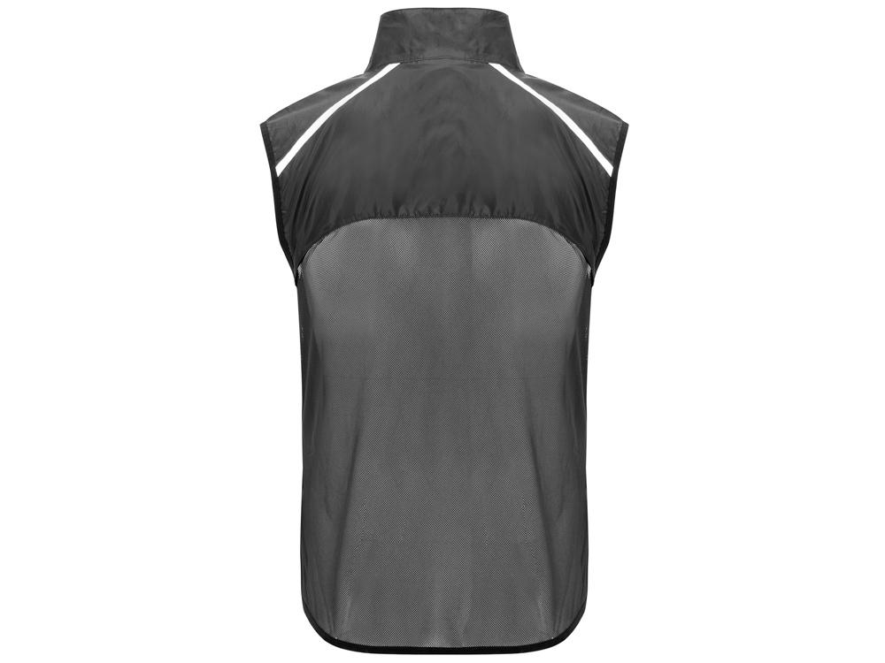 Легкий технический жилет для занятий бегом. - Молния спереди в тон с защитой для подбородка. - Проймы и низ с эластичной окантовкой. - Нижняя часть спины из микроперфорированной ткани. - Светоотражающие детали сверху, спереди и сзади. - Карман на резинке для хранения жилета и ношения на запястье.