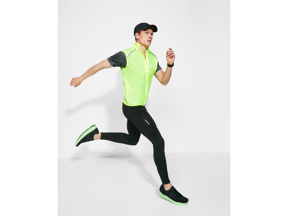 Легкий технический жилет для занятий бегом. - Молния спереди в тон с защитой для подбородка. - Проймы и низ с эластичной окантовкой. - Нижняя часть спины из микроперфорированной ткани. - Светоотражающие детали сверху, спереди и сзади. - Карман на резинке для хранения жилета и ношения на запястье.