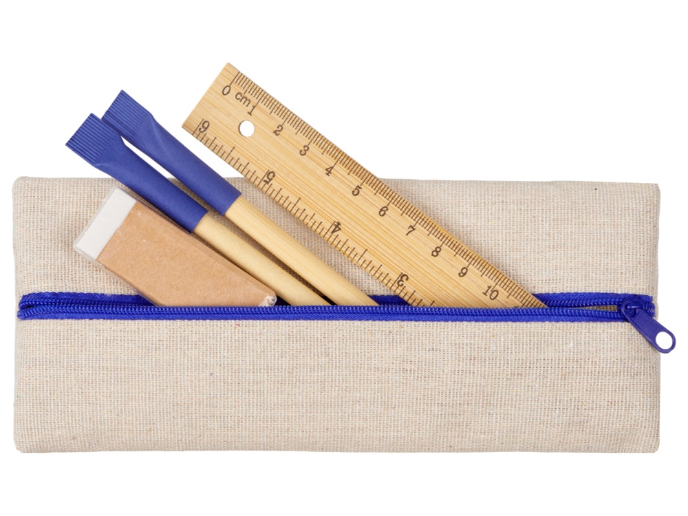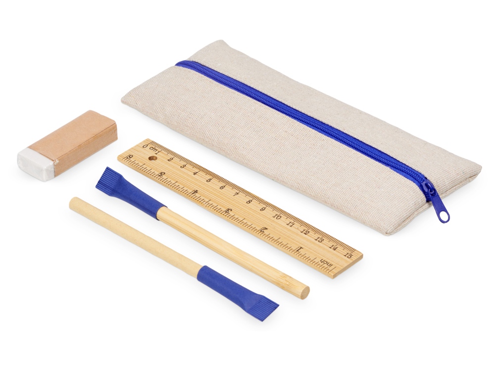 Удобный набор канцелярии со всем необходимым. В наборе: пенал на молнии, ручка Recycled, вечный карандаш в бамбуковом корпусе с колпачком из переработанной бумаги, ластик и бамбуковая линейка. Чтобы все самые необходимые пишущие принадлежности были под рукой.