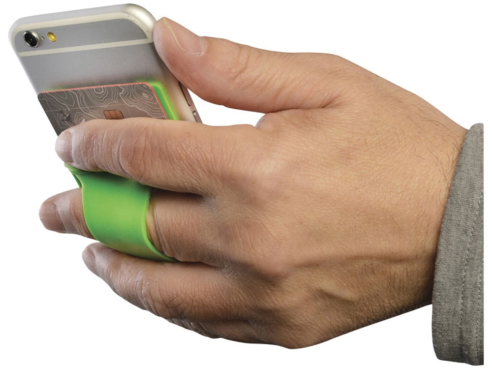 Силиконовый картхолдер для телефона с отверстием для пальца. Картхолдер можно легко прикрепить практически ко всем смартфонам с плоской панелью сзади при помощи липкой ленты. В него можно поместить кредитную карту/ идентификационную карту/ карту-ключ от номера / 5 визиток или банкноты. Отверстие для пальца для более удобного удержания телефона.