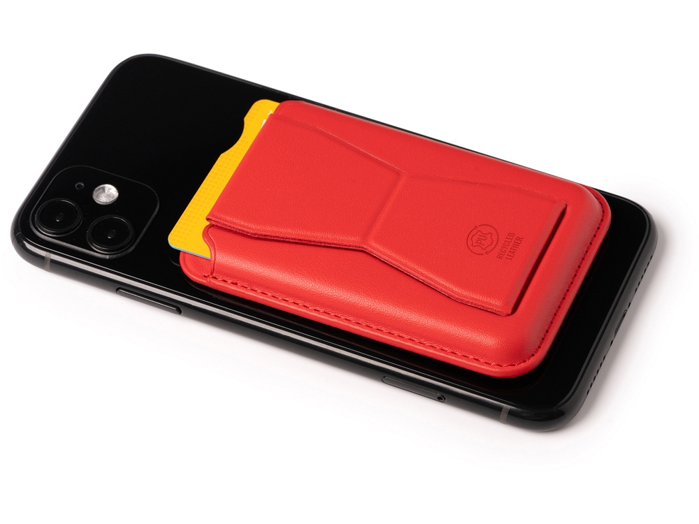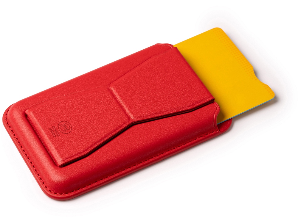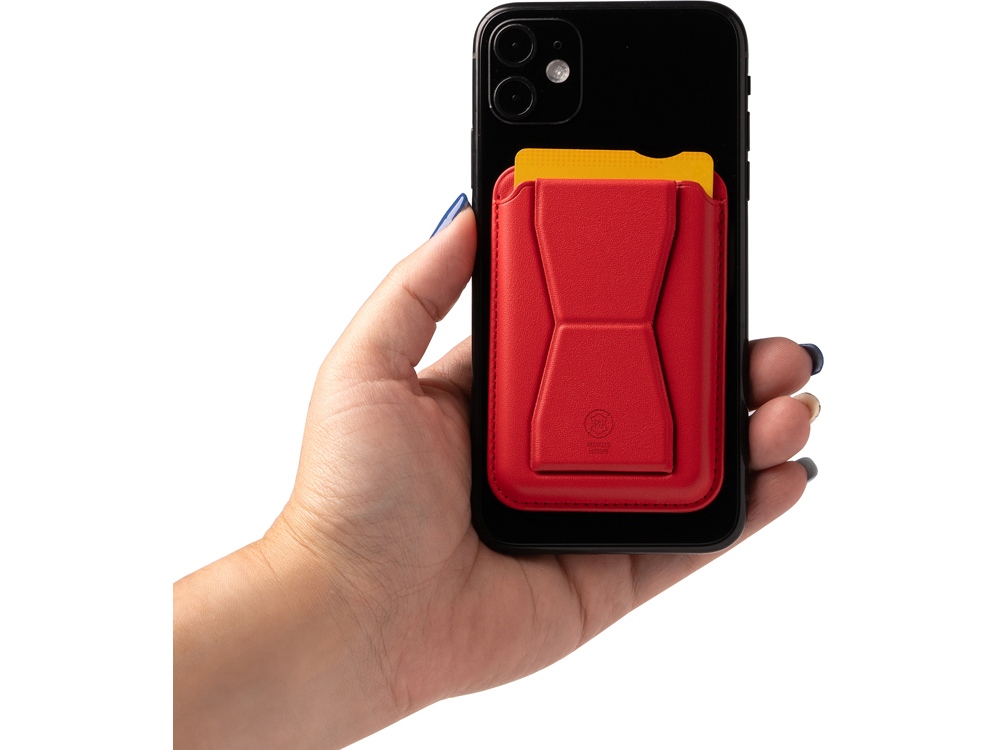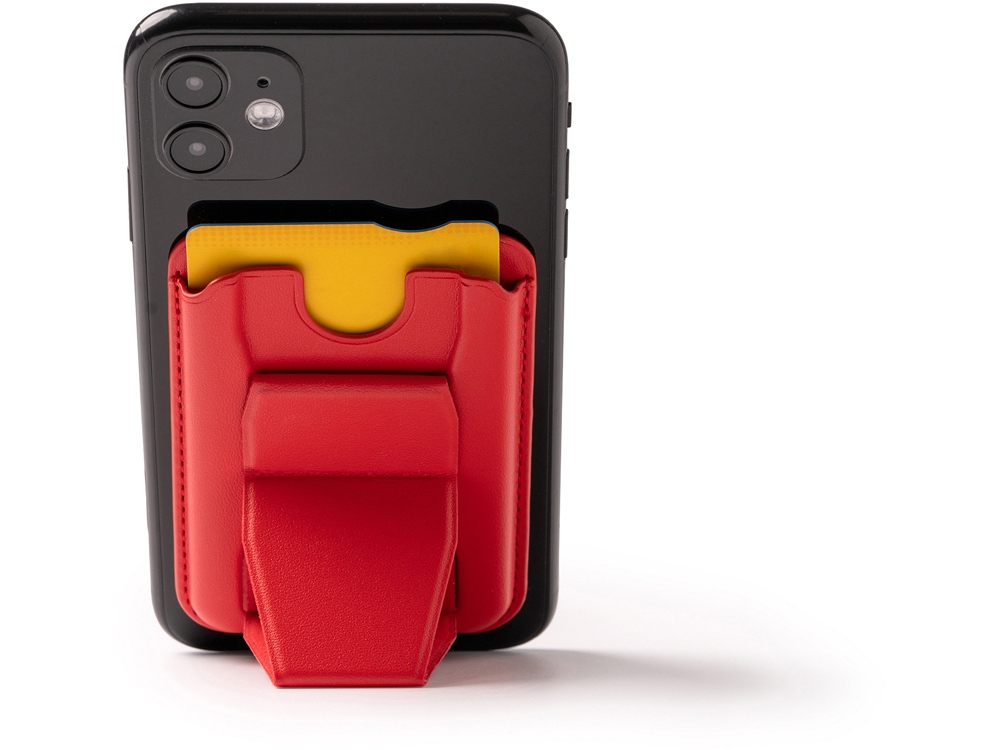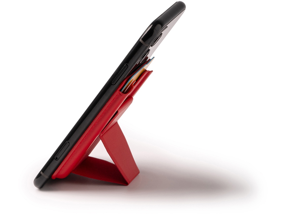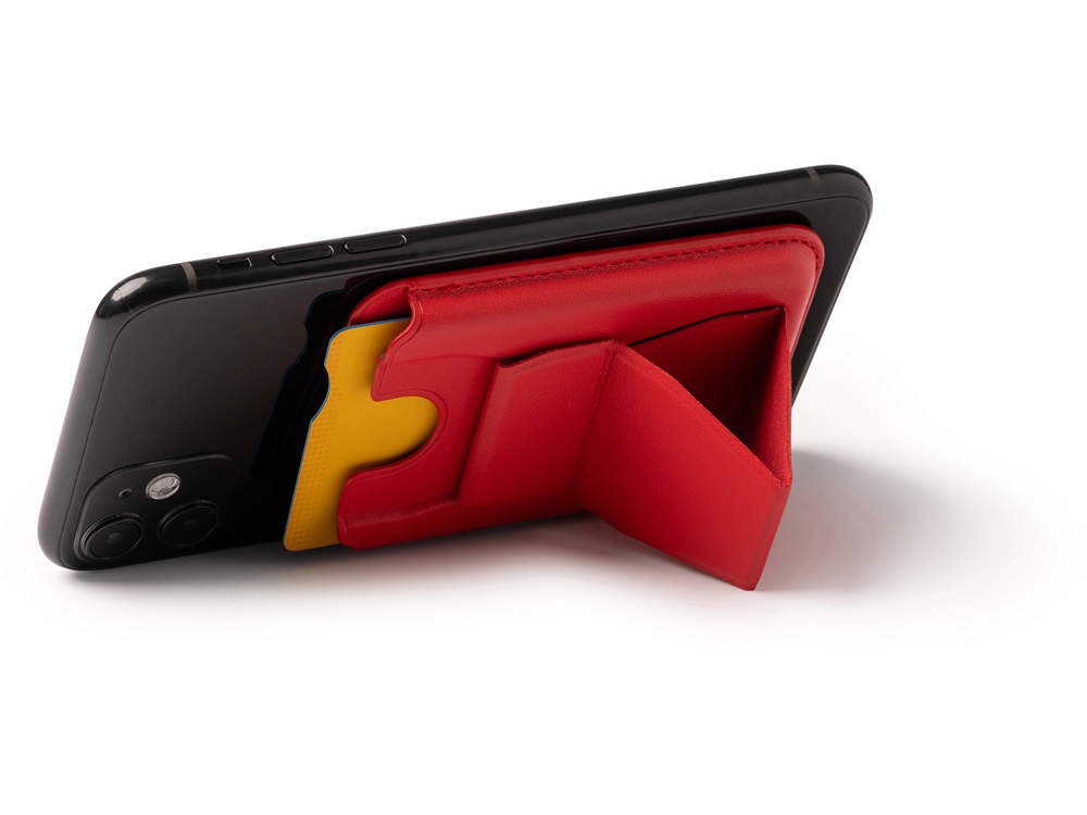 Картхолдер со складной подставкой из переработанного полиуретана. Картхолдер имеет минималистичный и современный внешний вид, который идеально дополнит любой смартфон. Складная подставка обеспечит вам удобство при просмотре видео, видео-звонках или чтении. При помощи специальной липкой фактуры, которая находится под защитной бумагой, картхолдер надежно приклеивается к вашему телефону. Не нужно беспокоиться о соскальзывании или повреждении — он будет оставаться на месте!