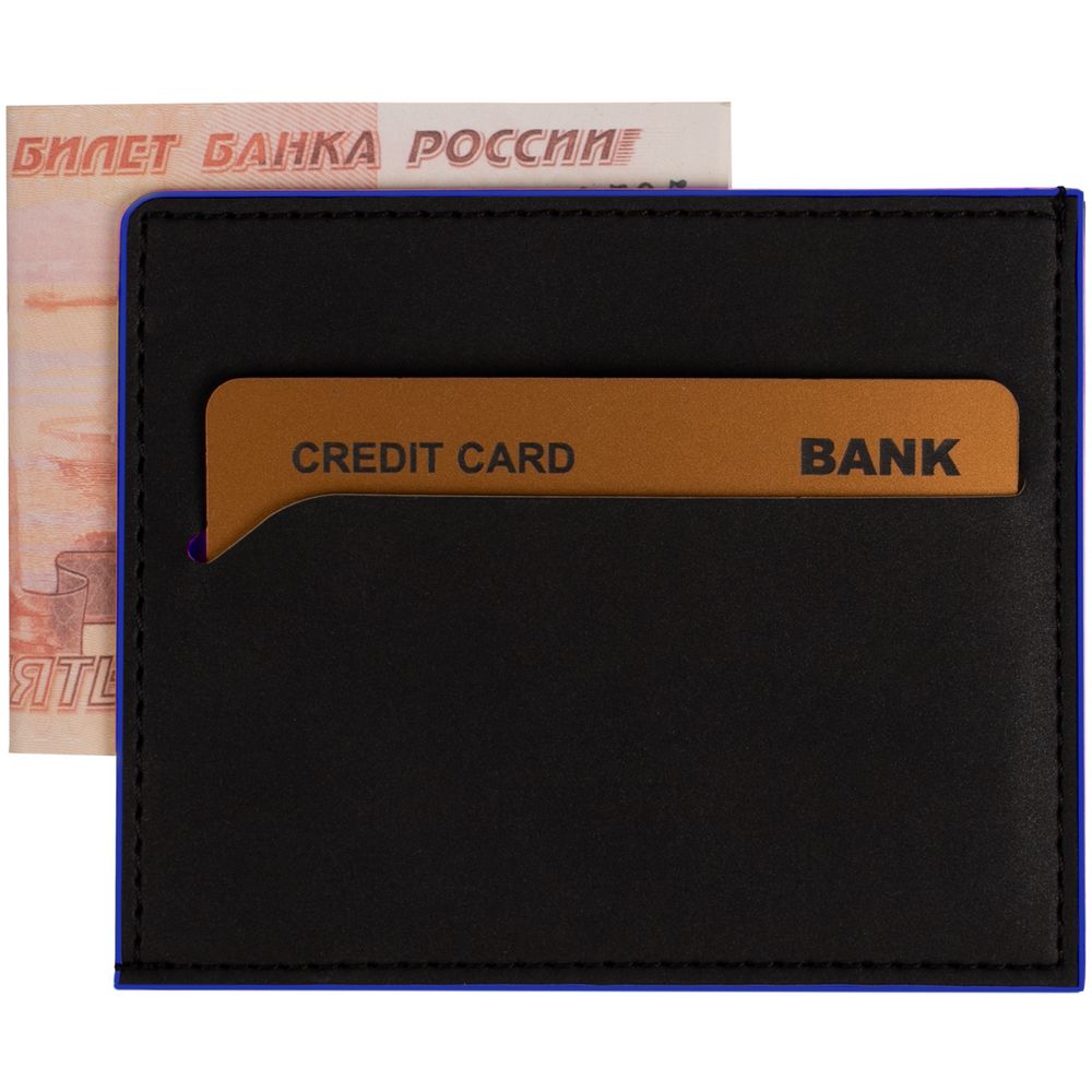 Картхолдер Multimo, черный с синим купить оптом и в розницу с нанесением логотипа в Уфе