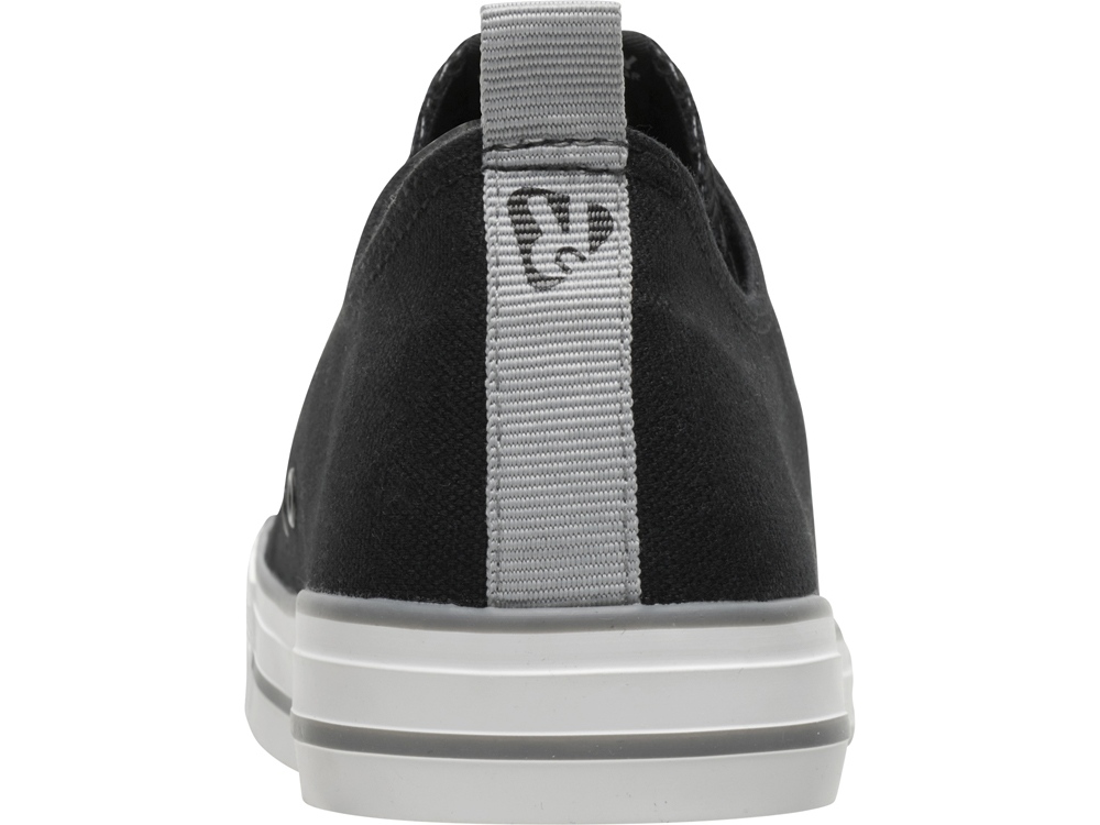Классические парусиновые кеды с белой резиновой подошвой и цветными полосками. Боковые вентиляционные люверсы, резиновый носок, шнуровка.