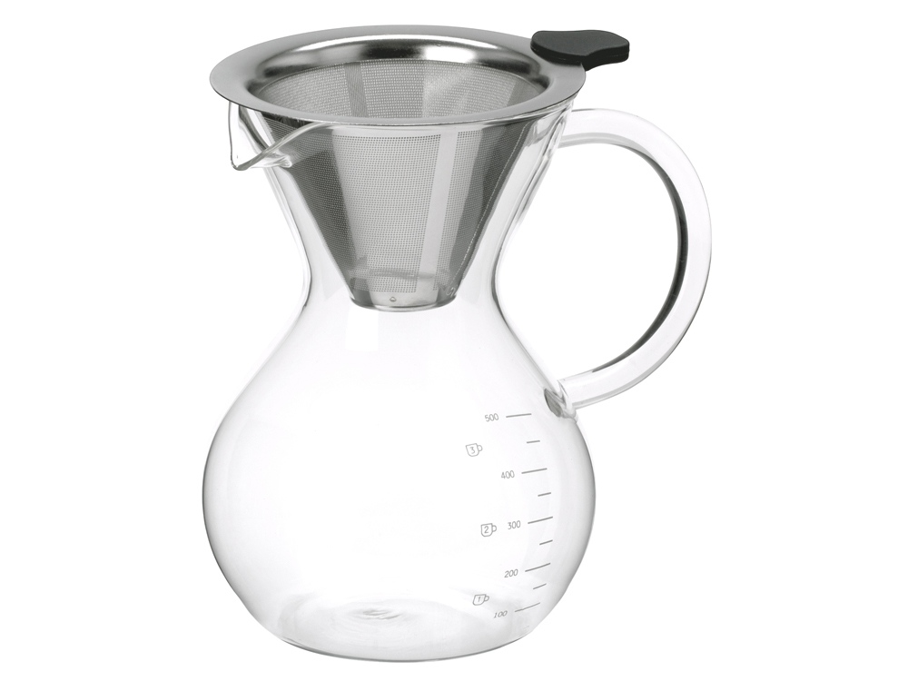 Drip подходит для заваривания молотого кофе капельным способом, лучше использовать крупный помол с частичками размером как морская соль. Большой объём позволяет заварить до 500 мл кофе за раз — это две стандартных порции. Жаропрочное боросиликатное стекло отлично переносит перепады температуры, а удобная ручка не нагревается, поэтому можно сразу разливать горячий напиток. Фильтр выполнен из высококачественной нержавеющей стали 304 марки, снабжен силиконовой накладкой на ручку, которая защитит от горячего металла. - не расходует электричество; - стальной фильтр в комплекте; - удобная мерная шкала на колбе; - стеклянную колбу можно использовать в микроволновке и посудомоечной машине.