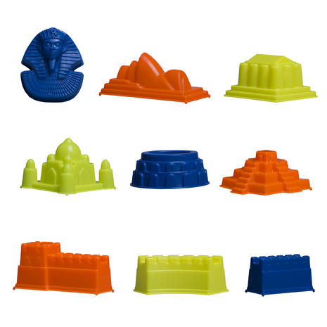 | – 9 формочек для лепки стен, крепостей, пирамид и различных достопримечательностей, | |