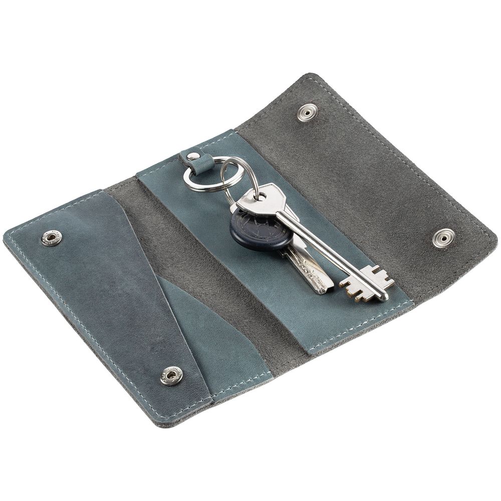 Ключница из натуральной кожи выглядит стильно, не дает ключам потеряться в недрах сумки и защищает ее содержимое от сколов и царапин. Внутри кольцо для крепления ключей длиной до 12 см. Застегивается на кнопки.
