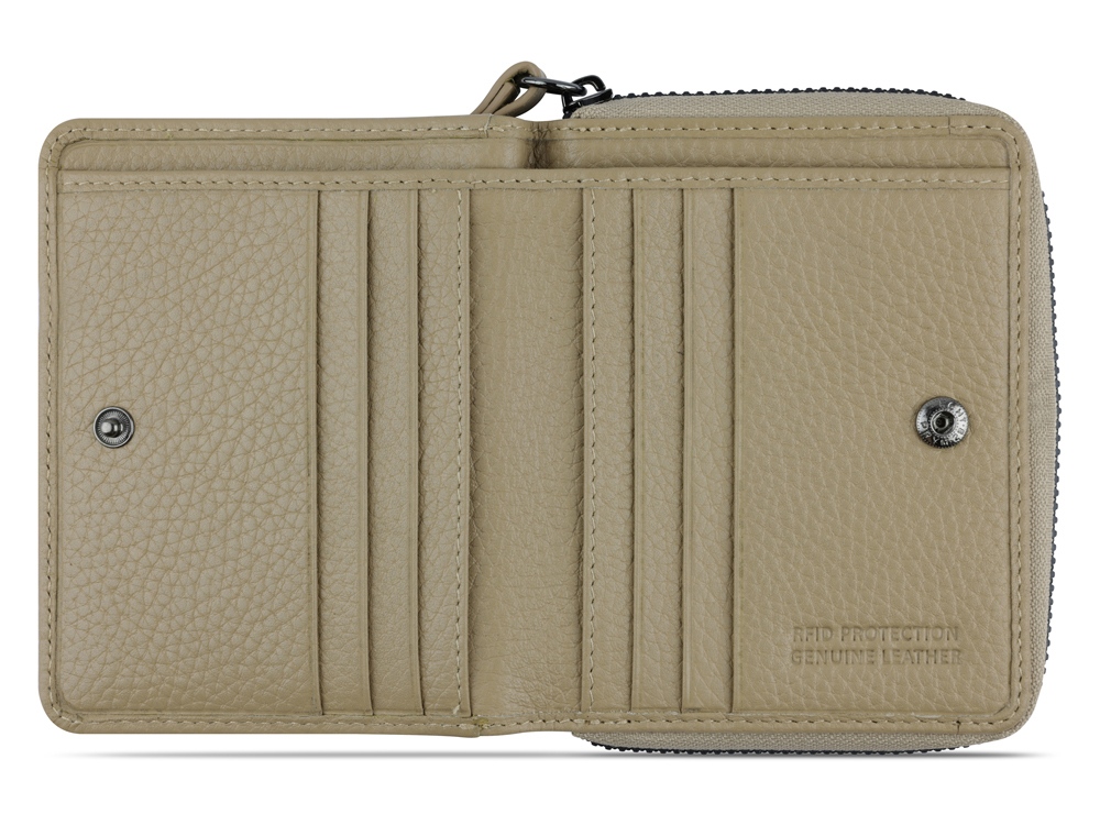 ЖЕНСКИЙ КОШЕЛЕК ELSA С ЗАЩИТОЙ ДАННЫХ RFID Готовы к поездке в выходные? Мы раскрасим вашу ленту в соцсетях невероятной коллекцией ELSA. Коллекция ELSA предлагает широкий ассортимент аксессуаров и сумок разных форм и размеров, от элегантных кошельков и изящных наплечных сумочек для выхода в свет до вместительных шопперов и дорожных сумок для путешествий. Все модели серии изготовлены из высококачественной мягкой воловьей кожи и представлены в классическом черном, белом и бежевом цветах. Элегантное тиснение логотипа Bugatti придает очарование каждой модели. Коллекция выделяется продуманной функциональной организацией внутреннего пространства и защитой от радиочастотной идентификации RFID. Кошельки и ключницы оснащены специальным защитным слоем из фольги, который предотвращает незаконное сканирование вашей личной информации и препятствует списанию денежных средств с банковских карт. Какой бы аксессуар или сумку вы бы ни предпочли, будьте уверены, что с коллекцией ELSA вы точно окажетесь в центре внимания. СВОЙСТВА Функциональная организация: основное отделение на молнии, 6 слотов для карт, 8 карманов, отделение для купюр, 2 отделения для монет, ремешок на запястье, защита данных RFID. Материал: воловья кожа/полиэстер Размер: 11 х 2,5 х 9 см Вес: 0,105 кг