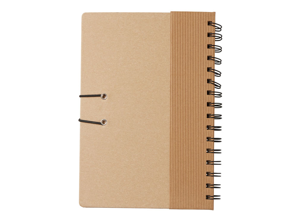 Крафтовый блокнот на спирали с фиксирующей резинкой. 80 листов коричневой бумаги 70 г/м2.