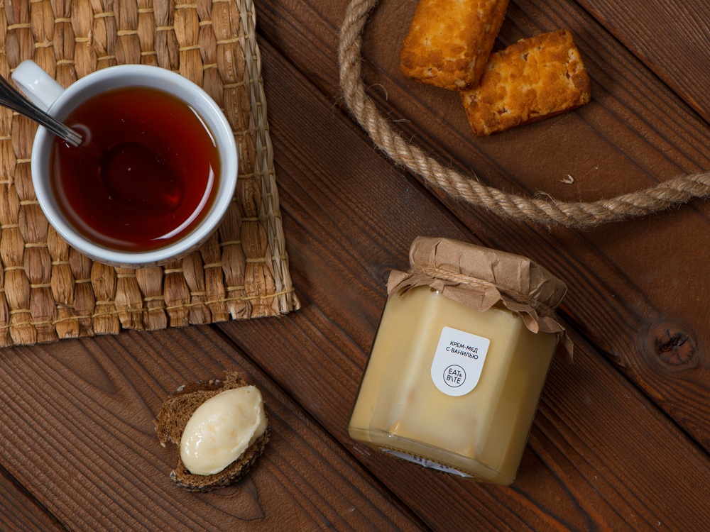 Крем-мёд это настоящий десерт для сладкоежек. Благодаря своей структуре он идеально подходит как топпинг, который легко намазать и не бояться, что он растечется по тарелке. Ваниль подчёркивает сладкий вкус крем-мёда