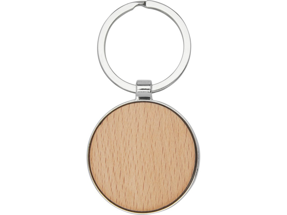 Круглый брелок премиум-качества из буковой древесины с металлическим корпусом из цинкового сплава. Поставляется в коричневой упаковке из шрифтовой бумаги. Диаметр брелка составляет 4 см. Пригодный для гравировки.