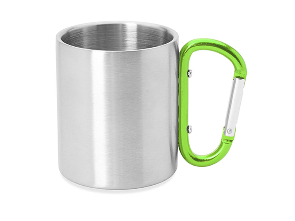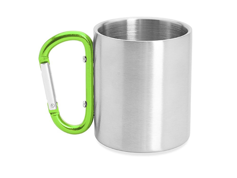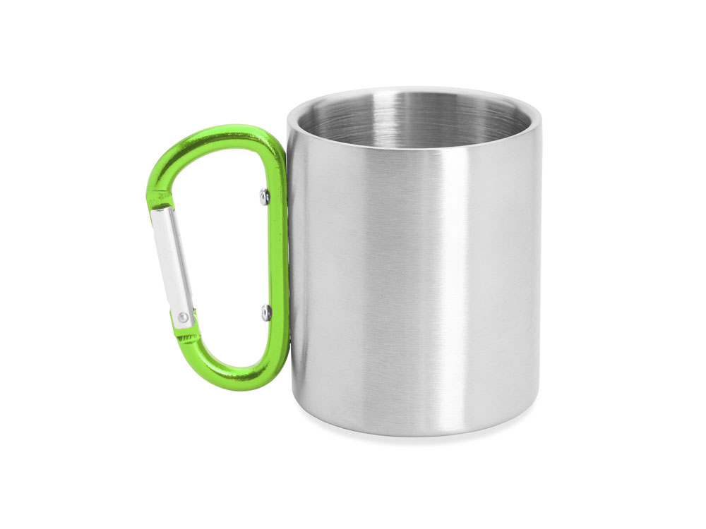 Двустенная металлическая кружка с ручкой-карабином. Доступен в различных цветах. Объем 230 мл.