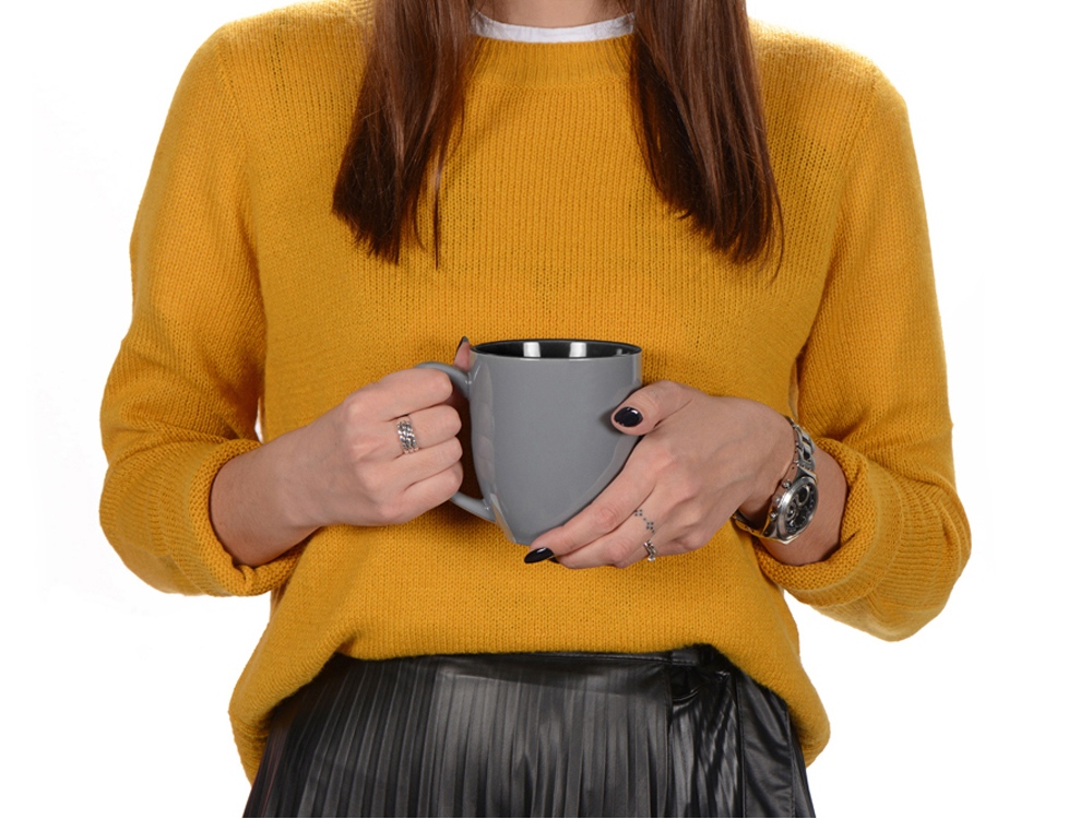 Gracy - прекрасный выбор для тех, кто скорее предпочитает большую чашечку свежесваренного утреннего кофе, нежели глоток эспрессо. Кружка выполнена из достаточно легкой и тонкой керамики, её удобно держать в руке за счет большой ручки. Большой объём позволит наслаждаться любимым напитком в течение долгого времени. Нейтральный серый внешний цвет и широкая палитра ярких внутренних идеально подойдут под нанесение любого логотипа, надписи или изображения. - целых 450 мл в объеме - эффектное сочетание на контрасте внутреннего и внешнего оттенков глазури - одна из самых удобных ручек - глянцевая с обеих сторон