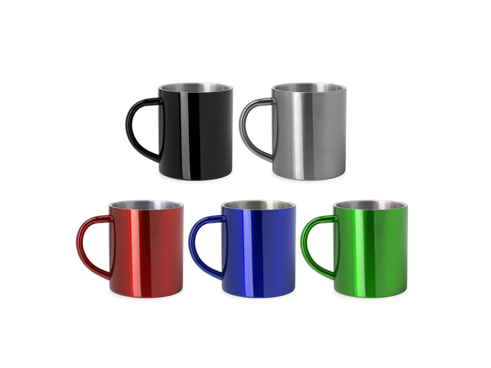 Двустенная металлическая кружка объемом 290 мл. Доступна в 5 различных цветах.