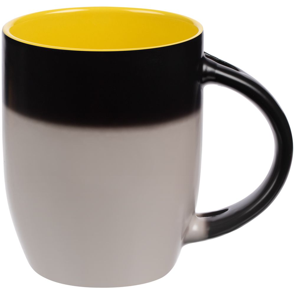 Кружка-хамелеон Melty с ложкой, черная с желтым купить оптом и в розницу с нанесением логотипа в Уфе