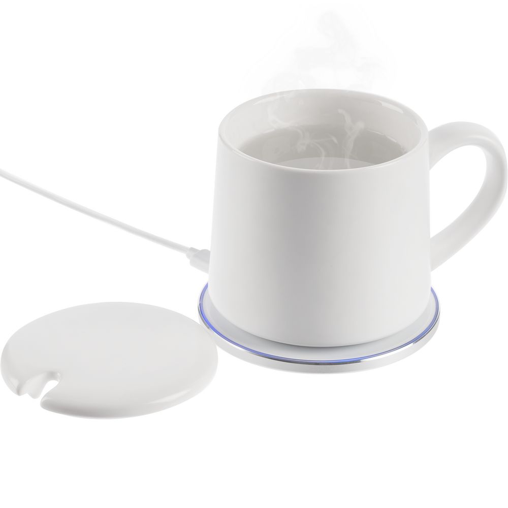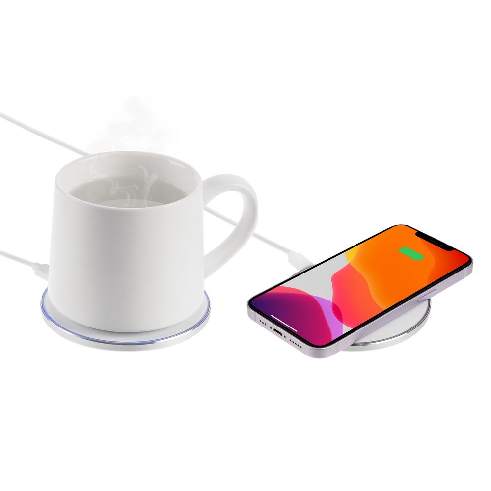 Кружка с подогревом и беспроводной зарядкой Dual Base ver. 2.0 matt, белая купить оптом и в розницу с нанесением логотипа в Уфе
