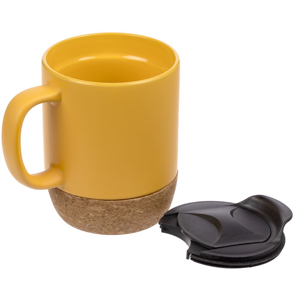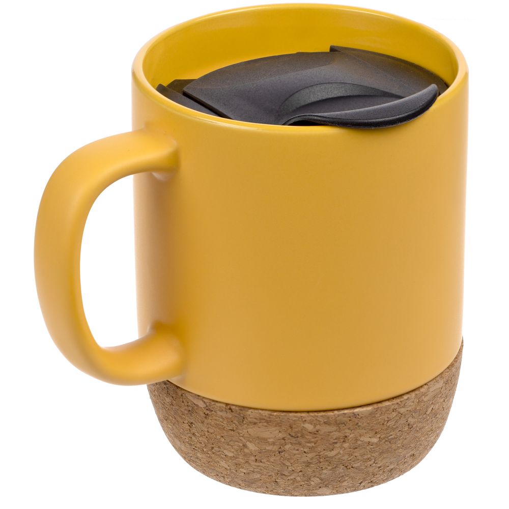 Кружка с пробковой подставкой Corky Walk, желтая купить оптом и в розницу с нанесением логотипа в Уфе