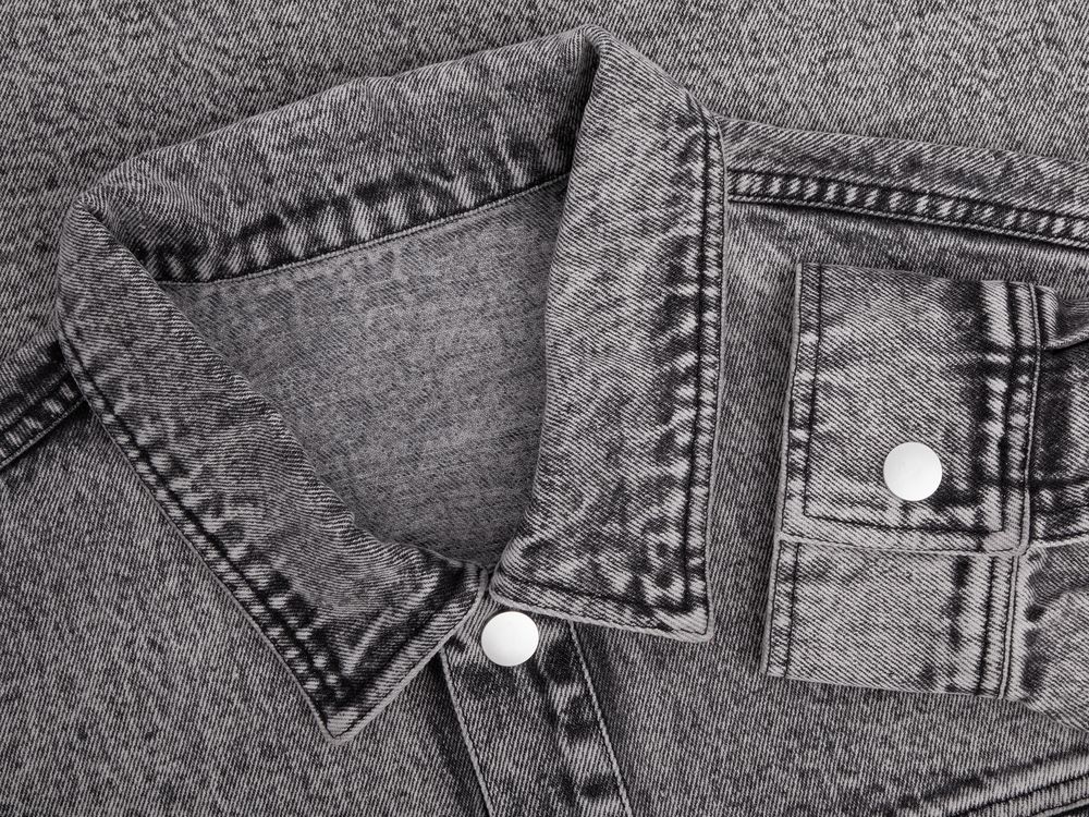 Джинсовая куртка унисекс на кнопках свободной посадки.