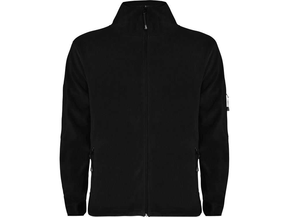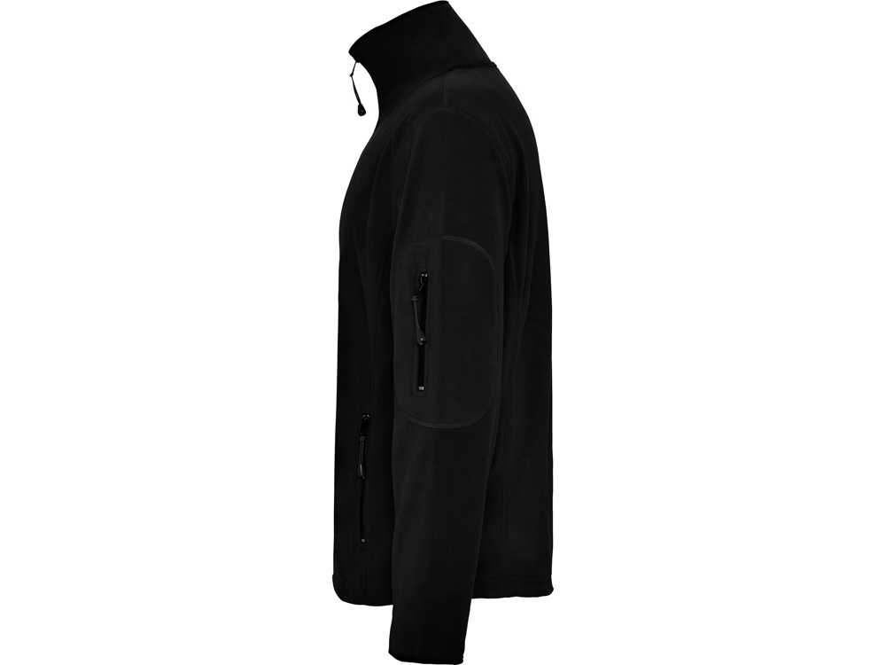 Куртка из микрофлиса с высоким воротом. Контрастная центральная молния, боковые карманы на молнии, декоративная молния на левом рукаве, отделка резинкой по краю рукавов. Налокотники из основного материала.
