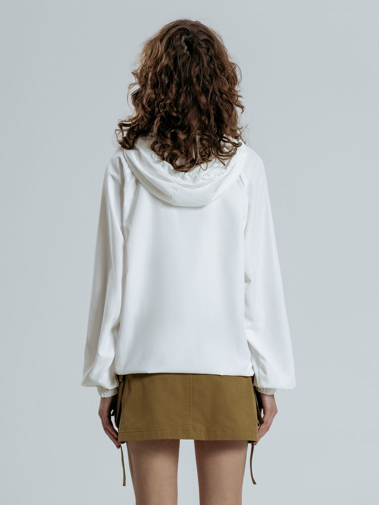 • Кулиска с эластичной резинкой по краю капюшона, по низу изделия и по горловине воротника изделия