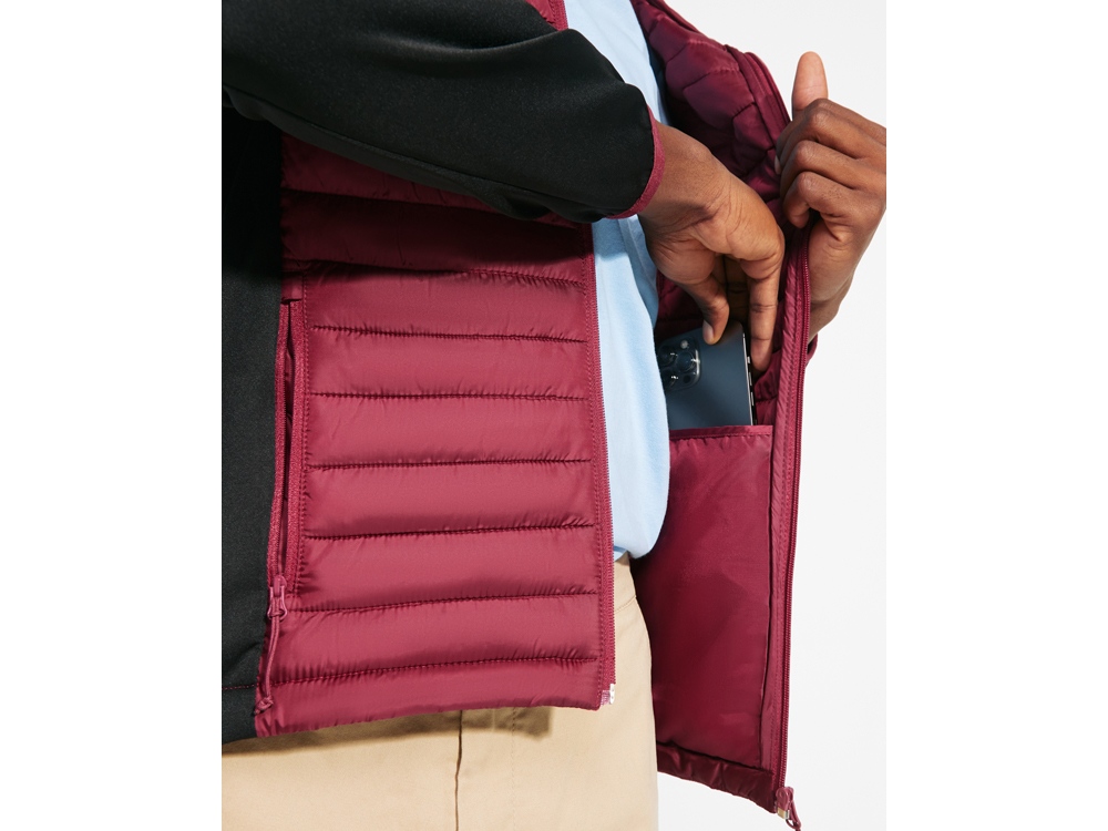 Мужская куртка из двух комбинированных тканей. - Несъемный регулируемый капюшон. - Рукава реглан. - Ткань softshell на рукавах, боковых вставках и капюшоне. - Стеганая ткань с утеплителем спереди и сзади. - Молния в тон с бегунком и защитой для подбородка. - Два кармана спереди с молнией. - Воротник, манжеты и низ с эластичной окантовкой в тон.