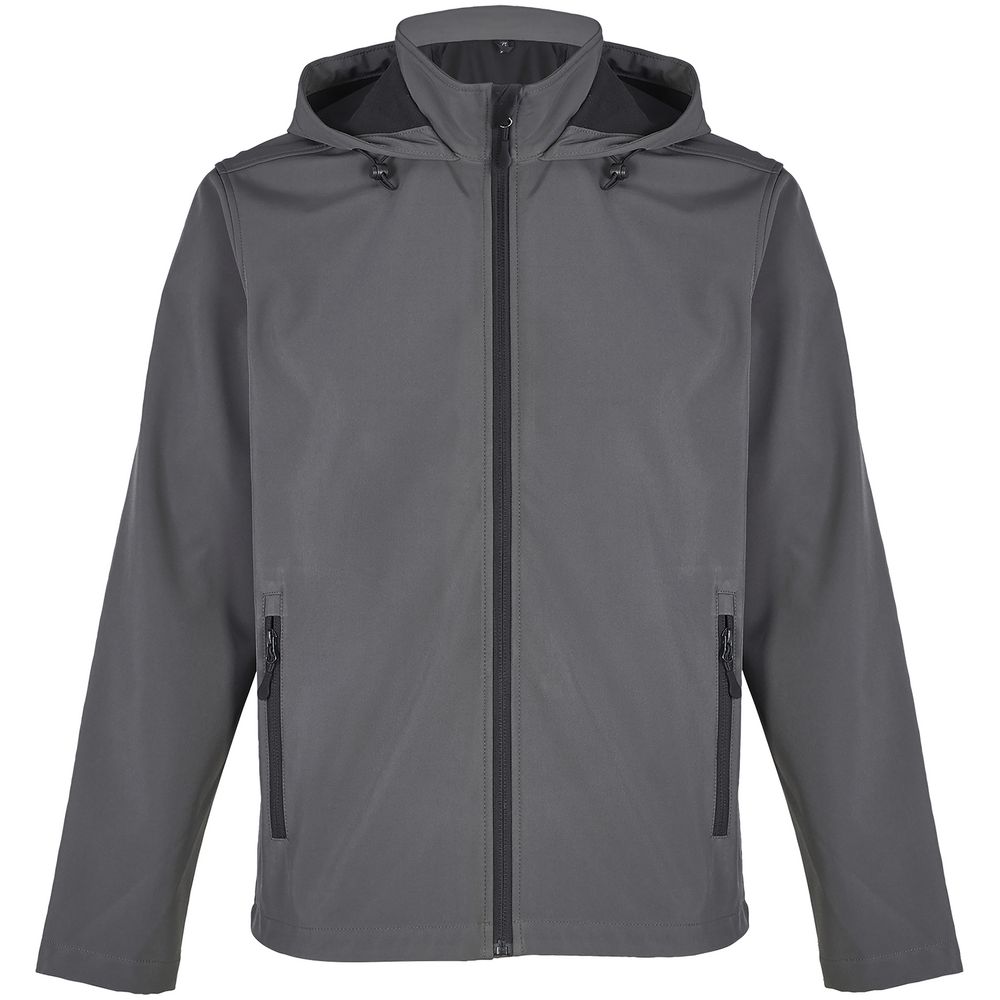 Куртка софтшелл с капюшоном мужская Race Men, темно-серая купить оптом и в розницу с нанесением логотипа в Уфе