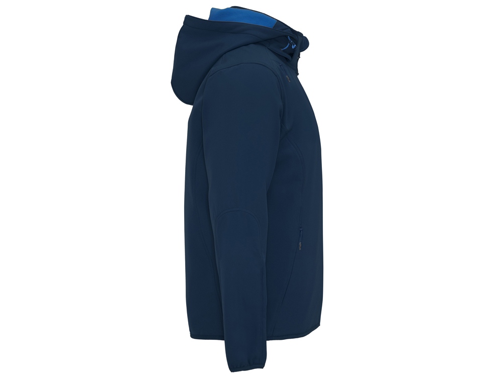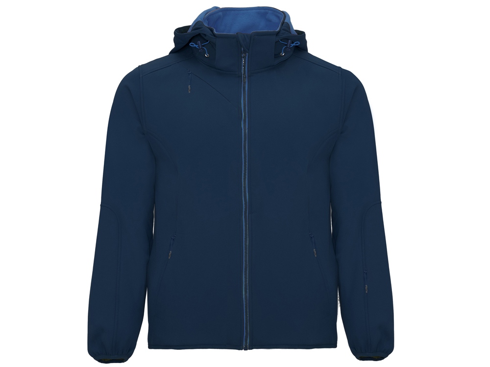Куртка софтшелл спортивного кроя из технологичного материала * контрастная центральная молния с ветрозащитной внутренней планкой * подкладка из контрастного ультра-теплого микрофлиса * прорезной кармана на груди по диагонали справа застёгивается на потайную молнию * два боковых кармана застегиваются на потайную молнию * дополнительный карман на левом рукаве * отделка резинкой в тон по низу рукавов и изделия * капюшон складывается в воротник * технологичное полотно: водонепроницаемое, с ветрозащитой.