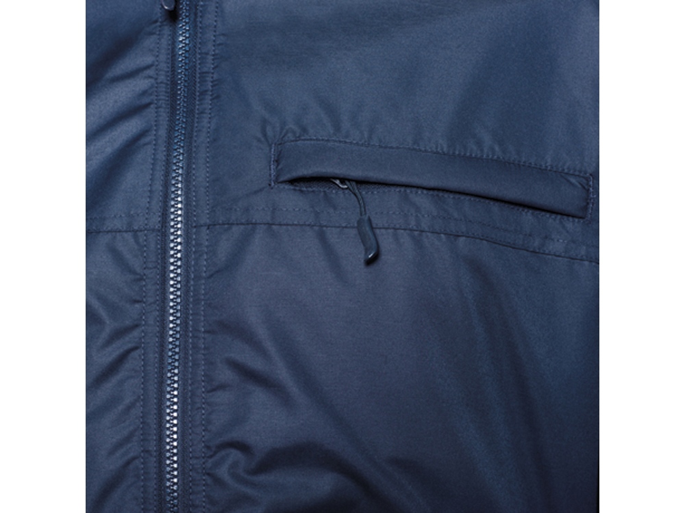 Удобная стеганая куртка из очень прочной ткани с высоким воротником. 1. Молния спереди c защитой для подбородка. 2. Три наружных карманы с клапаном и молнией. Один нагрудный карман с правой стороны и два кармана по бокам.
