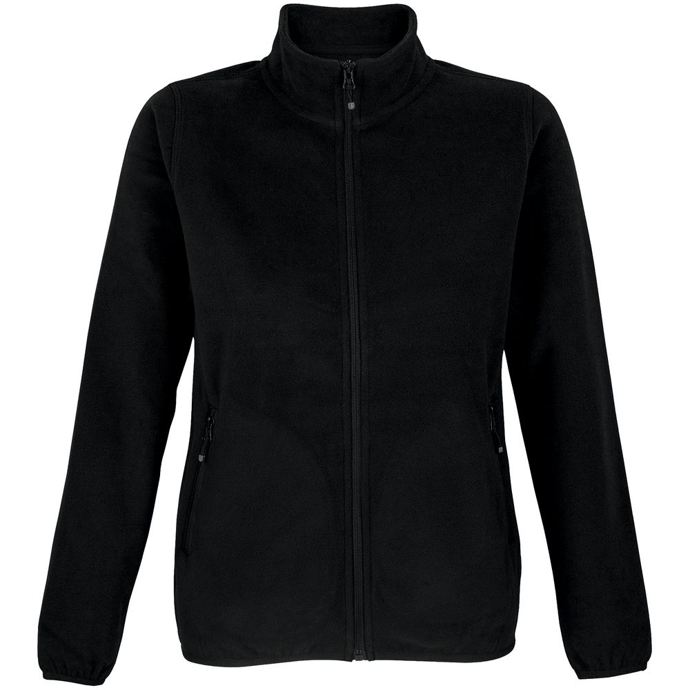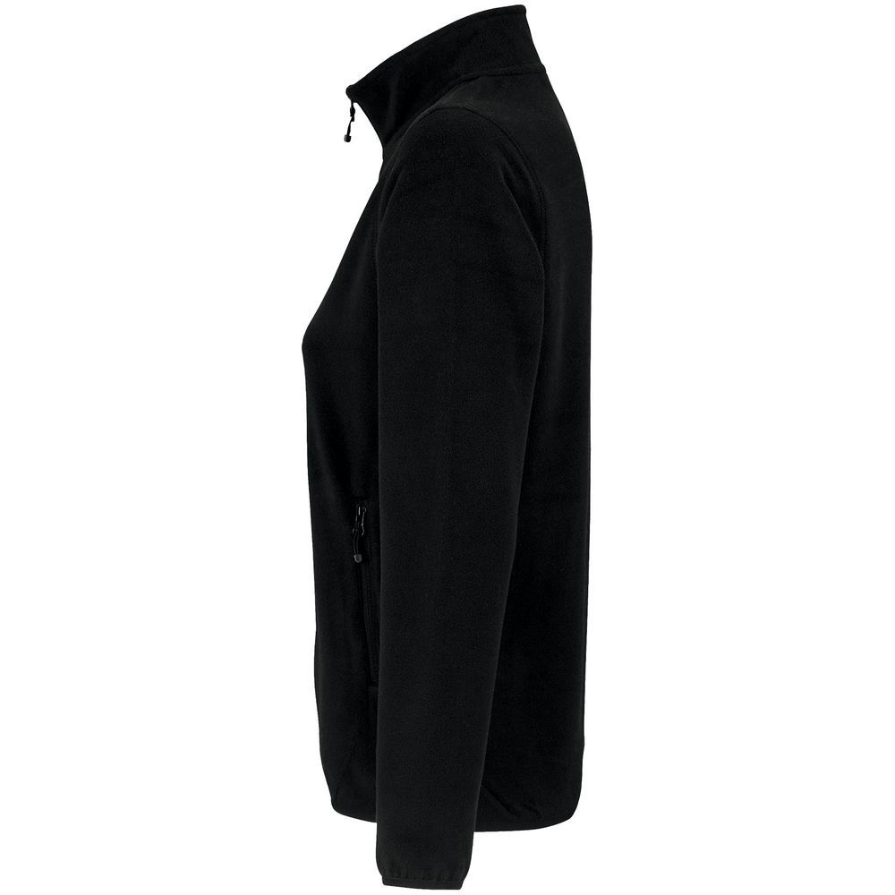Флисовая женская куртка с воротником-стойкой. Застежка-молния в тон ткани, боковые карманы на молнии. Укрепляющая тесьма по вороту. Края рукава и низ изделия отделаны эластичной резинкой.