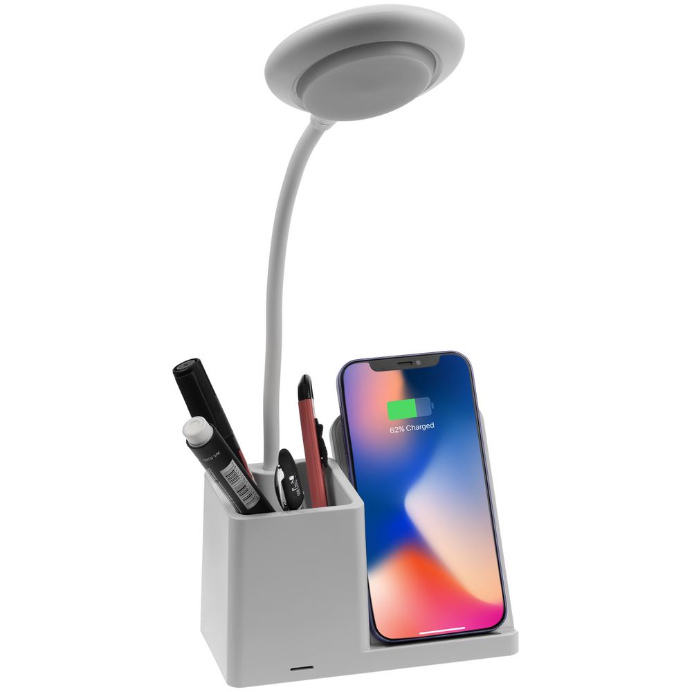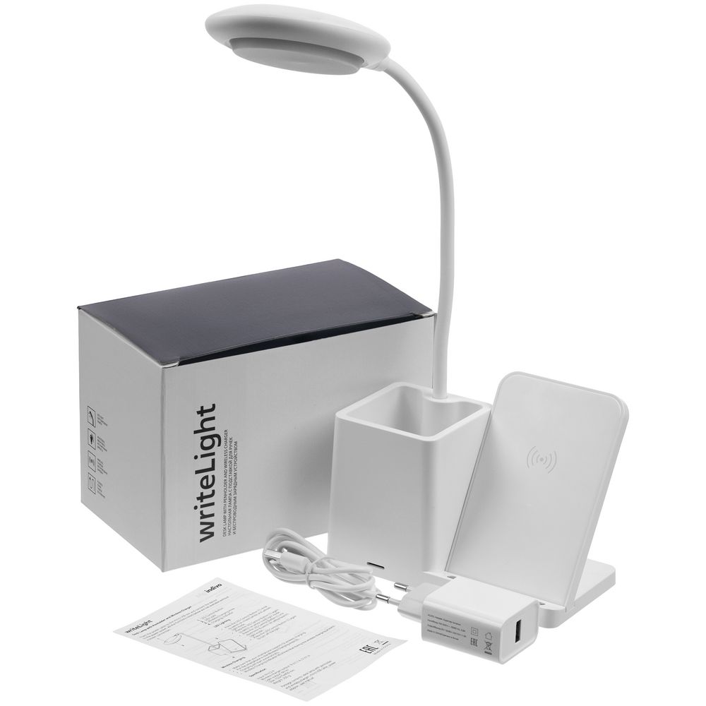 Лампа с органайзером и беспроводной зарядкой writeLight, ver. 2, белая купить оптом и в розницу с нанесением логотипа в Уфе