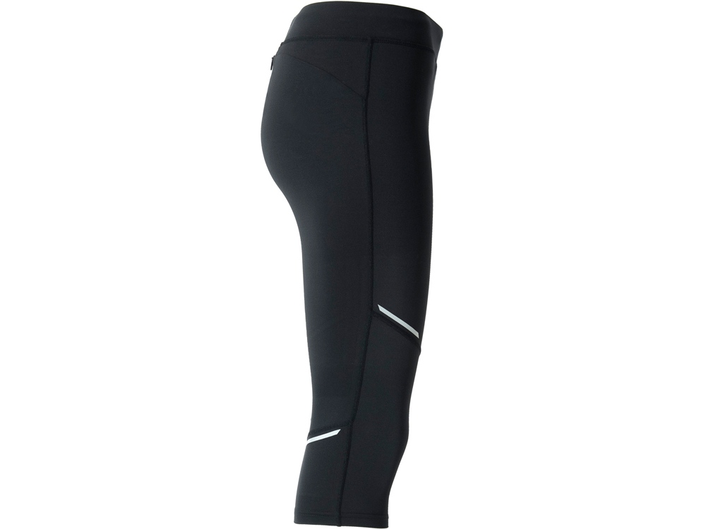 Женские спортивные легинсы длиной три четверти. Эластичный пояс с внутренним шнурком для регулировки. Светоотражающие детали. Карман сзади на молнии.