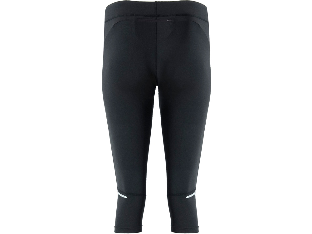 Женские спортивные легинсы длиной три четверти. Эластичный пояс с внутренним шнурком для регулировки. Светоотражающие детали. Карман сзади на молнии.