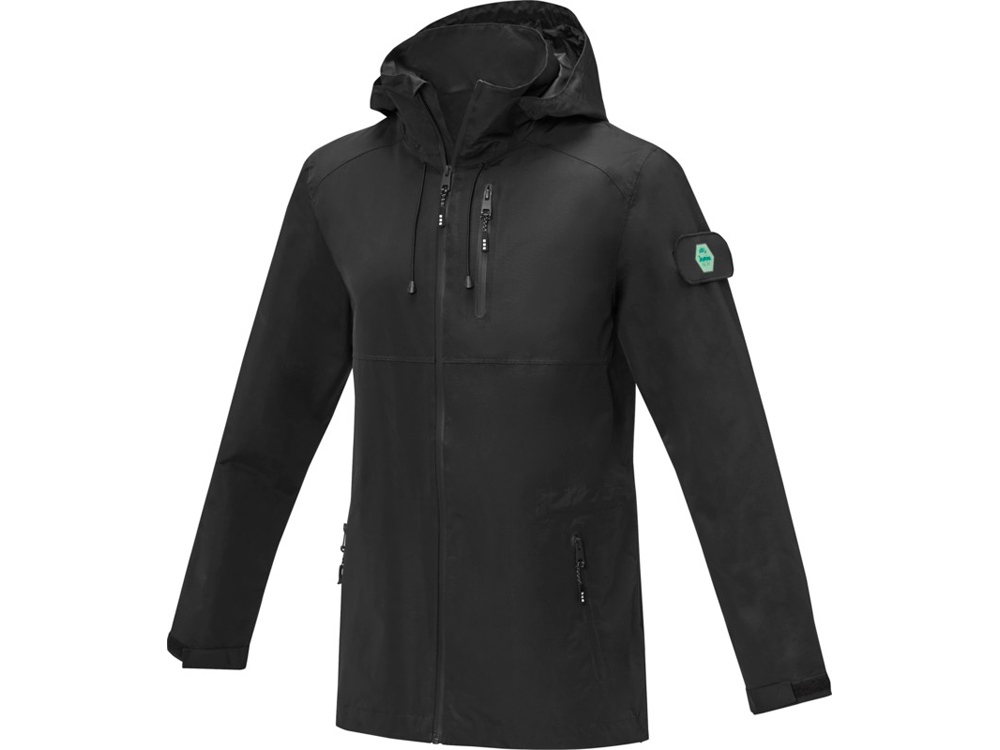 Экологически безопасная акционная одежда. Дизайн со вторичной переработкой для уменьшения воздействия на окружающую среду. Изготовлена из 100% мономатериалов. Система возврата: QR-код добавлен для получения дополнительной информации. Водонепроницаемость 5000 мм и воздухопроницаемость 5000 г/м². Полностью проклеенные швы. Укладывается в нижнюю внутреннюю часть спинки. Пояс на талии для более плотного прилегания. Застежка-молния с лентой из переработанного материала по центру спереди. Внутренний штормовой клапан с защитой подбородка. Передние карманы с водонепроницаемой застежкой-молнией. Нагрудный карман с водонепроницаемой застежкой-молнией. Внутренний карман. Эластичный шнурок с регулируемой фиксацией. Обшитые люверсы и шнурки с наконечниками. Бегунки застежки-молнии с простой фиксацией. Петля для подвешивания с фирменной символикой. Главный лейбл нанесен методом термоприклеивания, удобным для размещения рисунков на ткани.