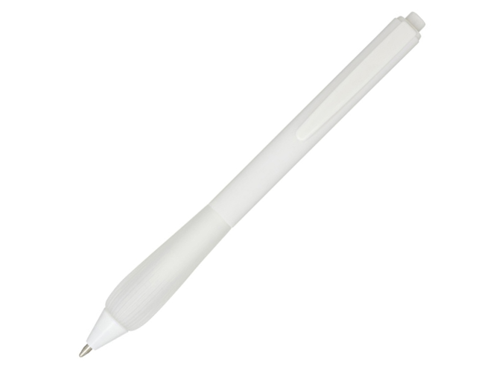 Шариковая ручка из переработанного пластика с прорезиненным корпусом и рукояткой из TPR. Цвет чернил: синий. Длина непрерывной линии: 1000 метров. Размер пера: 1,0 мм. Переработанный ABS пластик.
