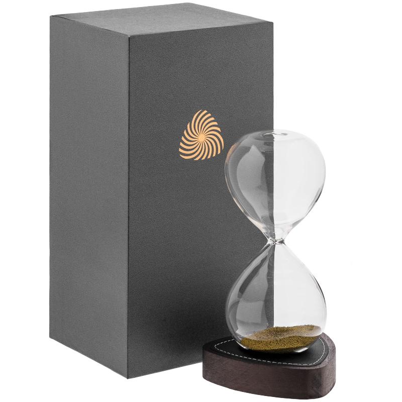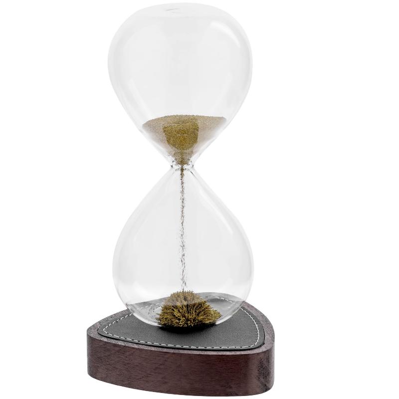 • В набор входит колба с магнитным песком золотистого цвета на +/- 60 секунд и деревянная подставка из бука со вставкой из натуральной кожи