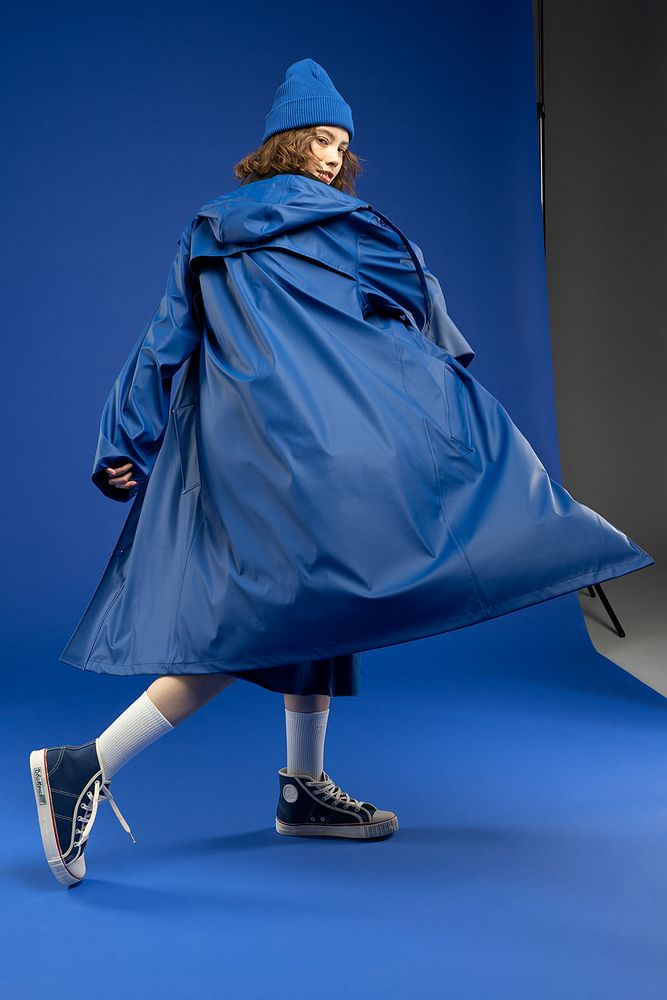 Плащ-дождевик с капюшоном из полиэстера с полиуретановым непромокаемым покрытием.