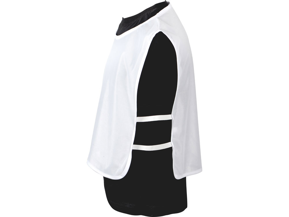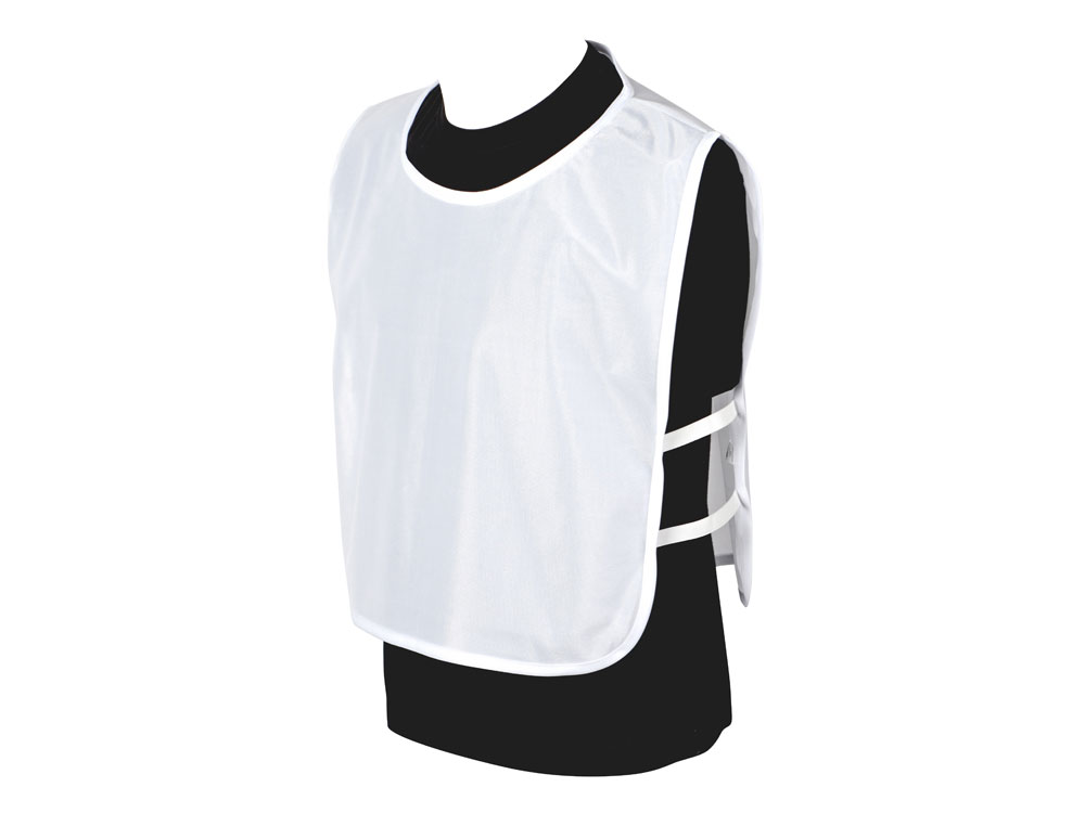 Универсальная спортивная манишка белого цвета. Боковые резинки обеспечивают удобство одевания и снятия. Материал манишки легко стирается и быстро сохнет. Манишка отлично подходит для маркировки спортсменов либо для разделения команд.