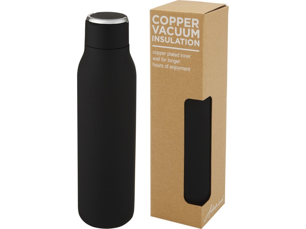 Бутылка Marka имеет вакуумную конструкцию из нержавеющей стали с медной изоляцией, которая сохраняет напитки горячими или холодными в течение нескольких часов. Изолированная конструкция из нержавеющей стали 18/8 предотвращает образование конденсата на внешней стороне бутылки, а модная финишная отделка порошковым напылением делает ее чрезвычайно прочной. Она также имеет навинчивающуюся крышку, устойчивую к проливам, и прочную, выполненную из цинкового сплава, петлю для руки. Не содержит БФА, испытана и одобрена в соответствии с немецким законодательством о безопасности пищевых продуктов (LFGB). Проверена на содержание фталатов и одобрена для использования в соответствии с правилами REACH. Подходит для большинства стандартных автомобильных подстаканников. Объем 600 мл. Рекомендуется мыть вручную. В подарочной коробке из переработанного картона.