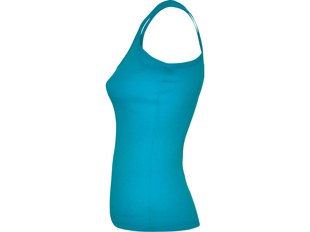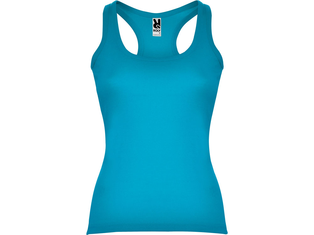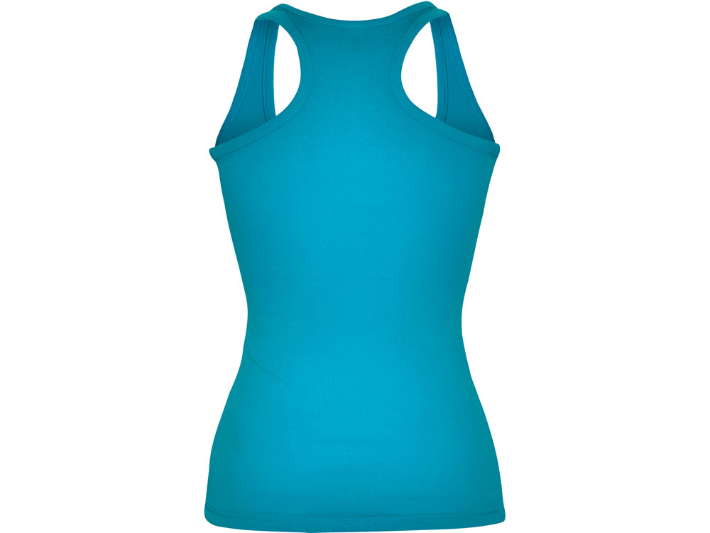 Майка приталенного силуэта с глубоким круглым вырезом горловины. Спортивная спинка, боковые швы.