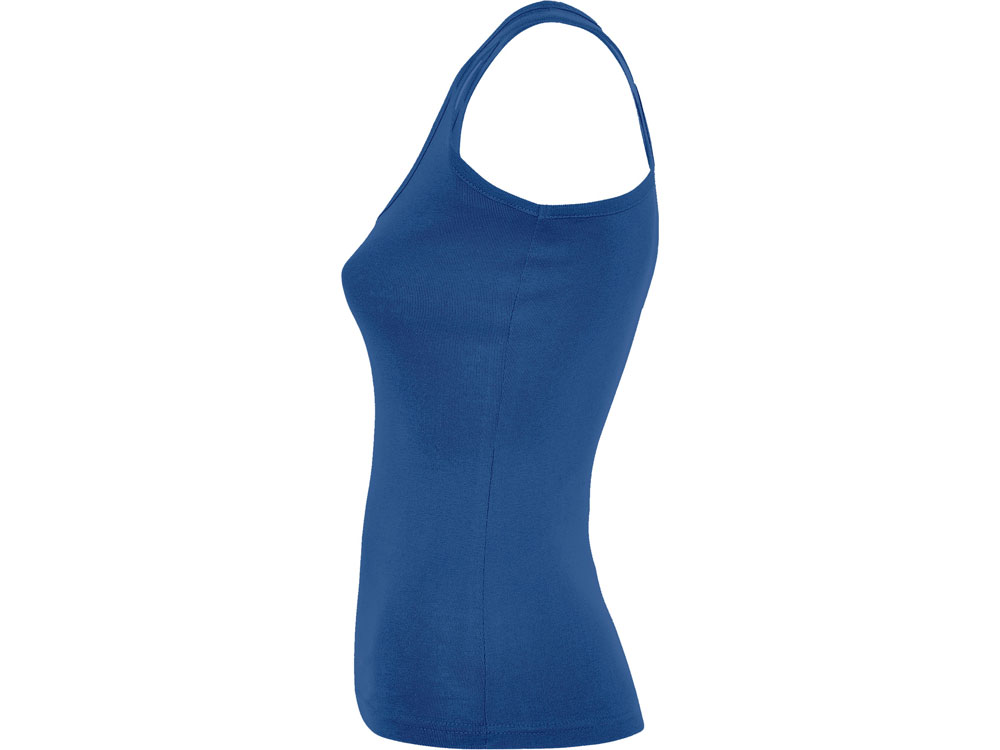 Майка приталенного силуэта с глубоким круглым вырезом горловины. Спортивная спинка, боковые швы.