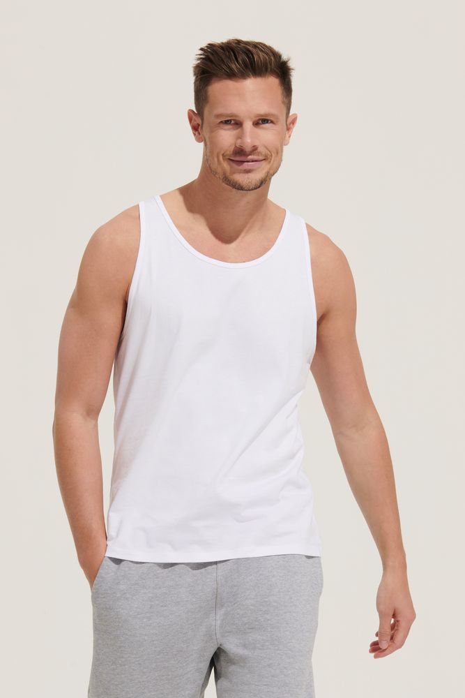Удобная свободная посадка с глубокими проймами. Горловина и проймы обработаны бейкой. С боковыми швами.