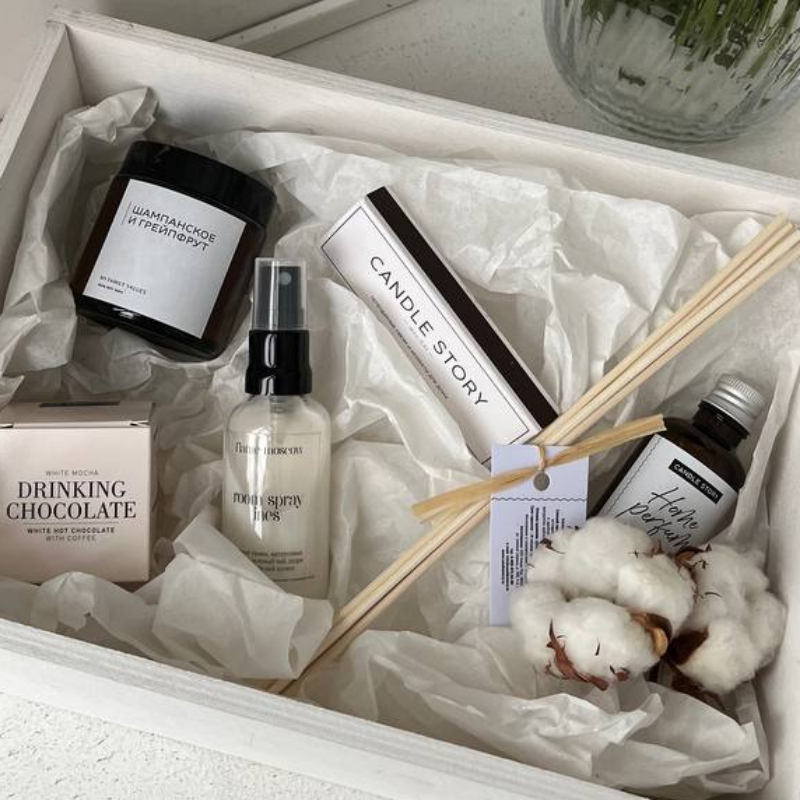 | Состав | свеча из соевого воска ручной работы, интерьерный диффузор, длинные спички, духи для дома, горячий шоколад Tafelgut |