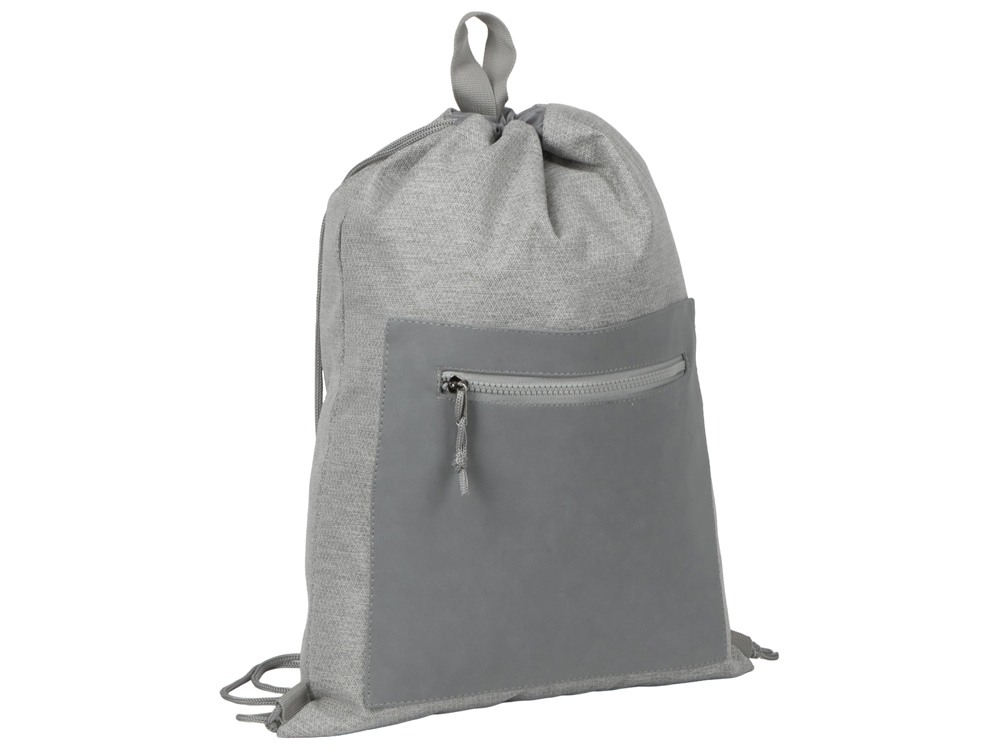 Прочный стильный рюкзак-мешок для ваших вещей из плотной текстурной ткани. Спереди карман на молнии со вставкой из экокожи. Вверху ручка для переноски или подвешивания.