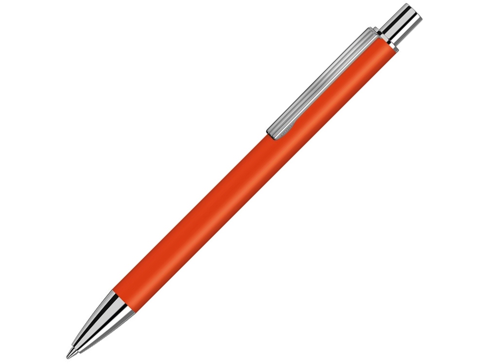 Металлическая автоматическая шариковая ручка с матовой поверхностью, металлическим зажимом, наконечником и кнопкой в сияющем серебре.
