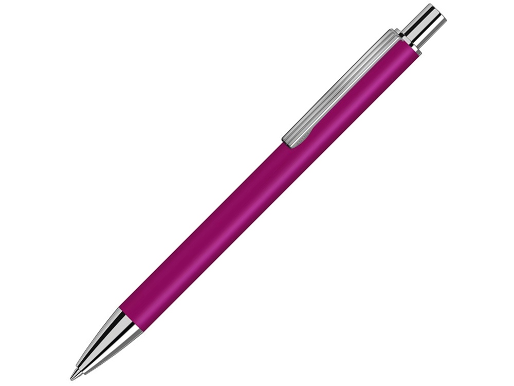 Металлическая автоматическая шариковая ручка с матовой поверхностью, металлическим зажимом, наконечником и кнопкой в сияющем серебре.