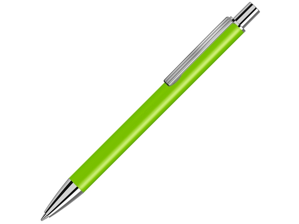 Металлическая автоматическая шариковая ручка с матовой поверхностью, металлическим зажимом, наконечником и кнопкой в сияющем серебре.