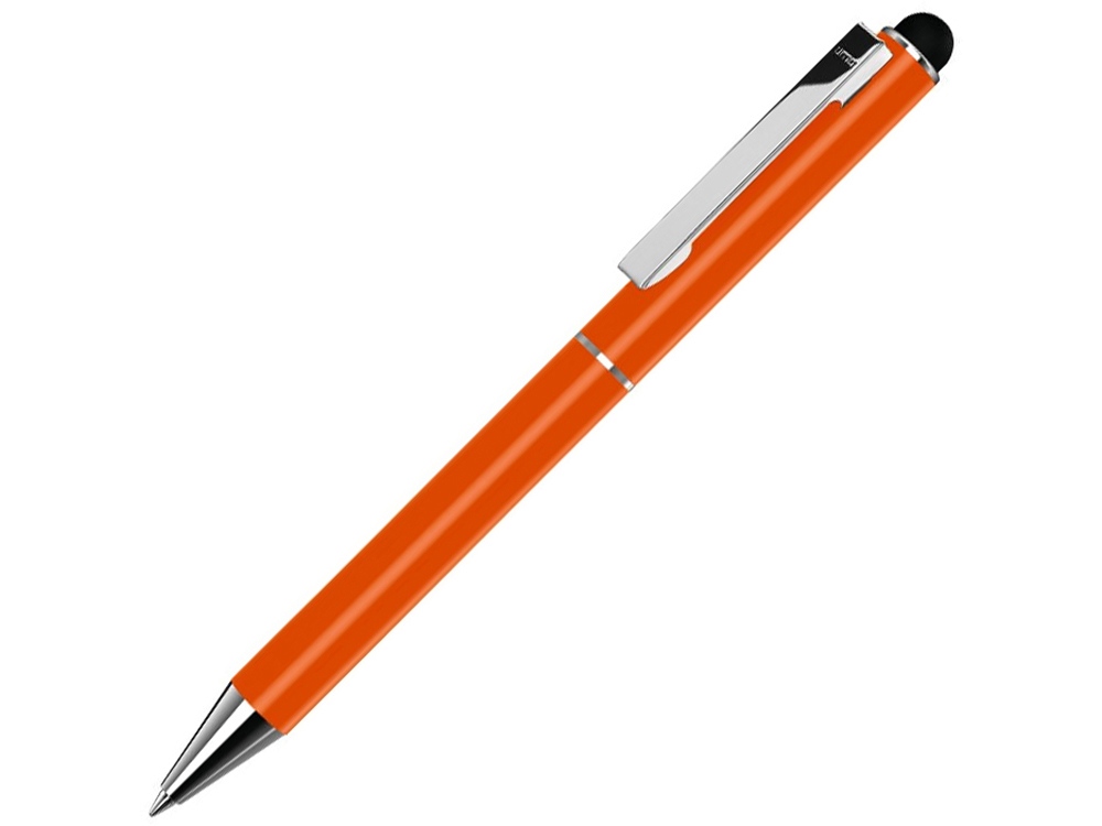 Металлическая шариковая ручка с матовой поверхностью, металлическим клипом, металлическим наконечником и кнопкой с глянцевой серебристой отделкой, прорезиненным ободом для сенсорного регулирования.