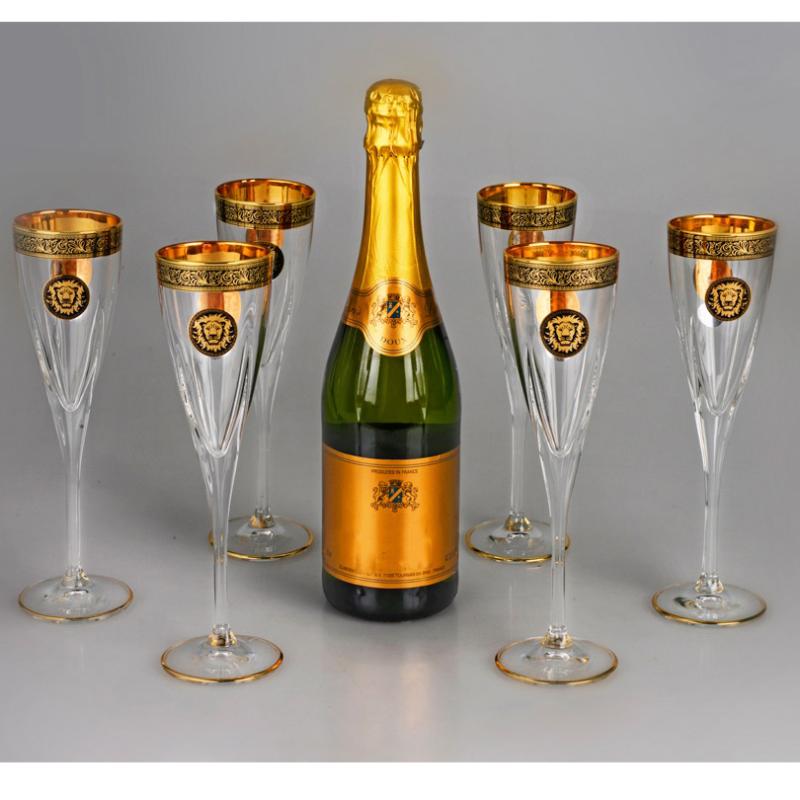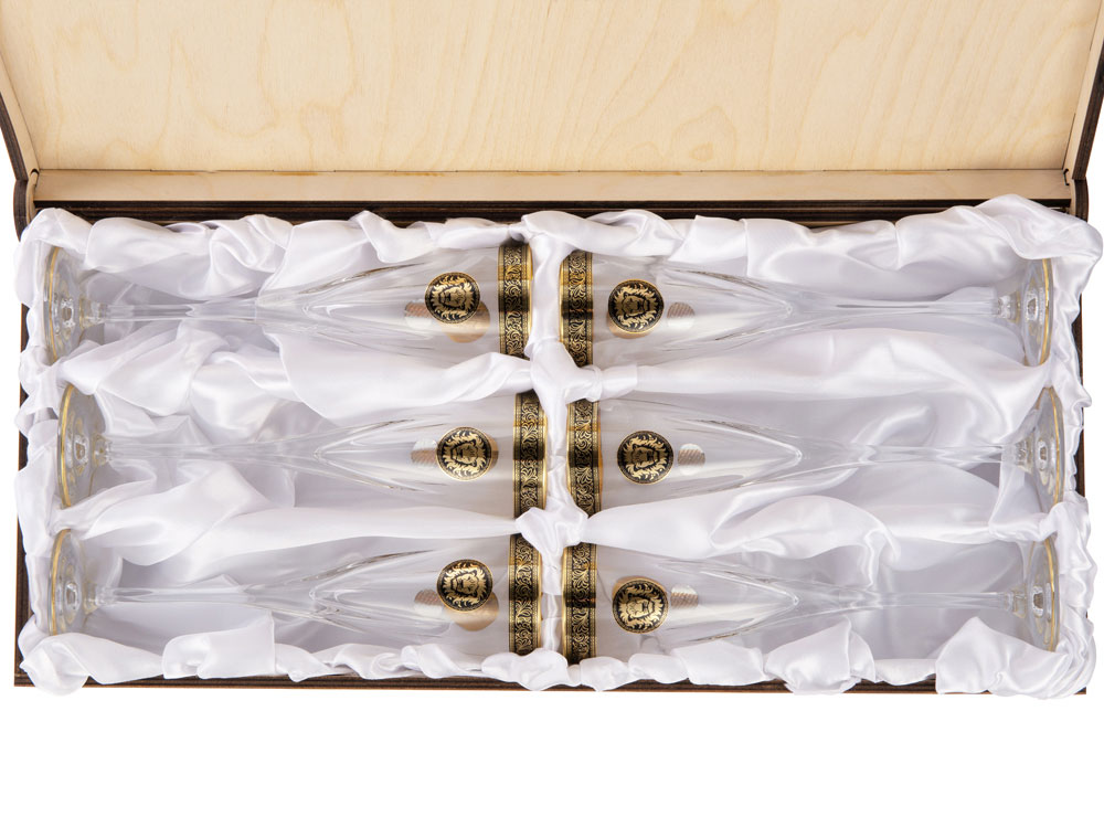 • Бокалы выполнены из прозрачного хрусталя с золотистой отделкой по краю и на ножке