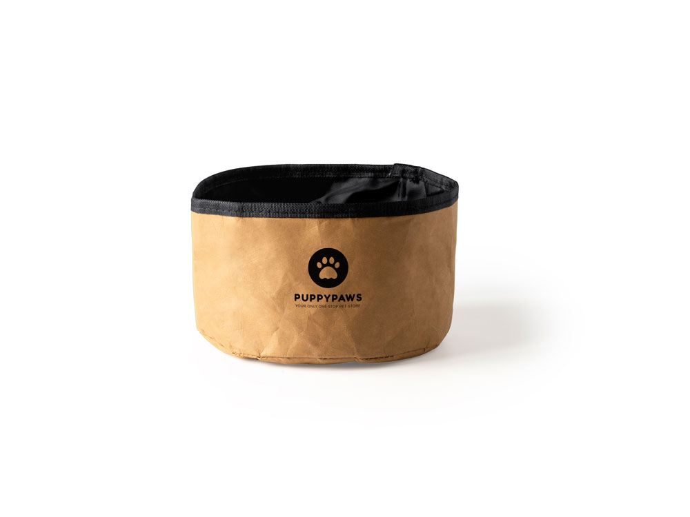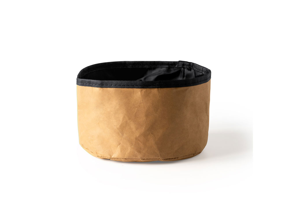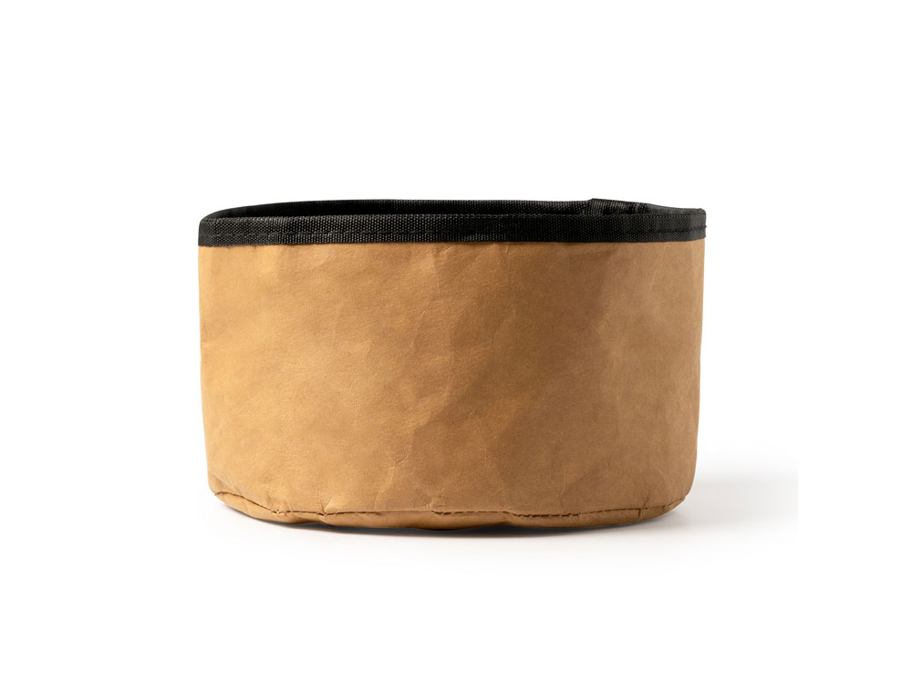 Складная миска для животных. Изготовлена из RPET и переработанной бумаги. Подходит для твердых продуктов. Объем 1,3 л.