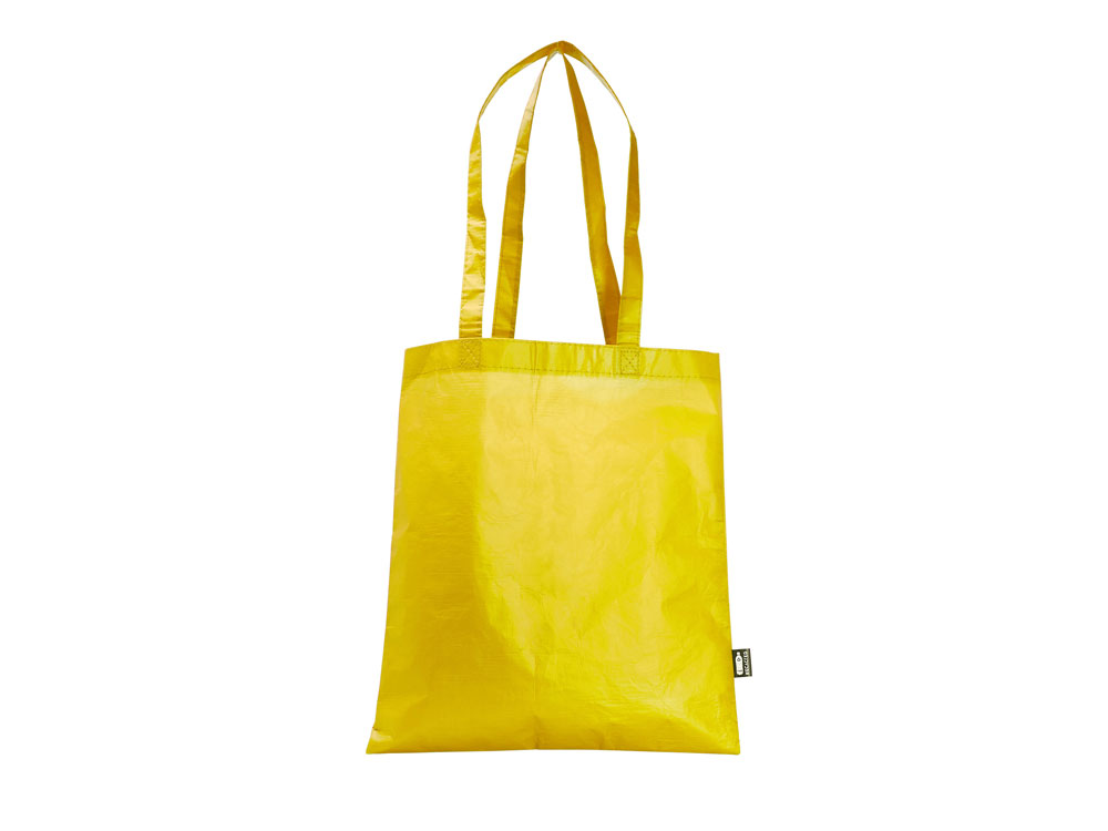 Многоразовая сумка с матовой ламинированной отделкой. Изготовлена из прочного RPET с усиленными ручками.