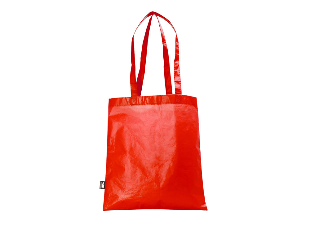Многоразовая сумка с матовой ламинированной отделкой. Изготовлена из прочного RPET с усиленными ручками.